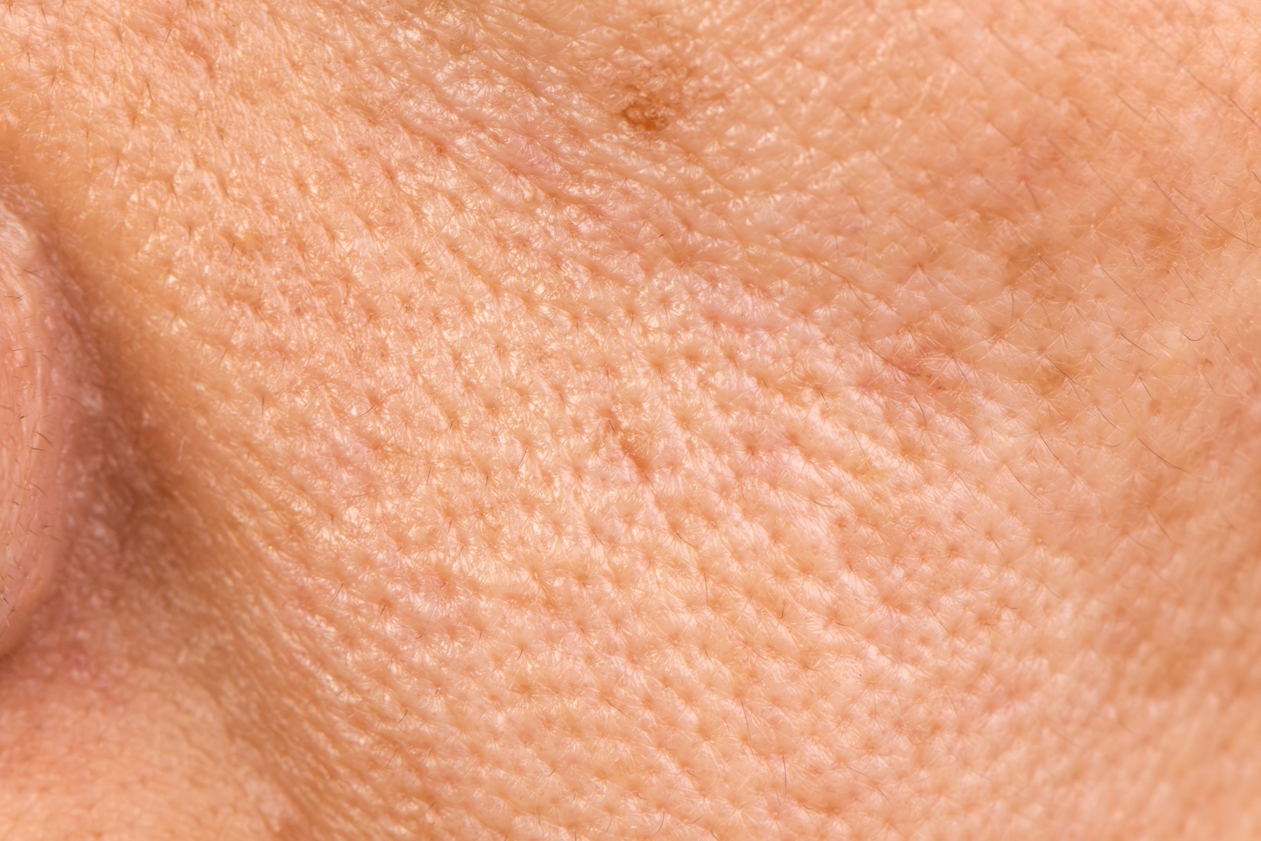 - 肌の角度を変えると凹凸がはっきり見える